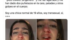 La joven finaliza su publicación con un llamamiento a visibilizar la agresión “para que se sepa lo que te puede llegar a pasar por ser trans en esa sociedad”.