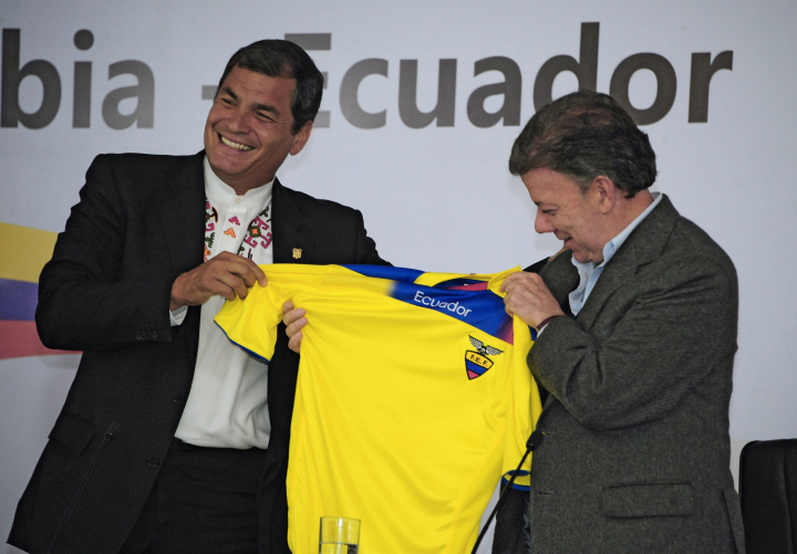 El entonces presidente de Colombia, Juan Manuel Santos, y el de Ecuador, Rafael Correa, intercambiaron en noviembre de ese año las camisetas de sus respectivas selecciones de fútbol y se desearon suerte de cara al Mundial de 2014, un acto que tuvo lugar en Ipiales (Colombia). No fue un gesto menor: al llegar a la presidencia, Santos era perseguido por el Gobierno ecuatoriano como “terrorista internacional”, por un bombardeo en territorio local, durante la presidencia de Álvaro Uribe en su guerra contra las FARC.