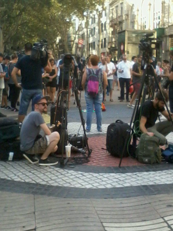 El mediterrani, bell i acolorit regal de Joan Miró al bell mig de les Rambles, davant del Liceu, que ahir era el sinistre blanc on va anar a raure la furgoneta assassina, avui està pres pels mitjans de comunicació, les teles, les càmeres. Com si necessitessin un punt d'ancoratge. Tímidament, algú hi ha dipositat un ram de flors, un cartell verd, algunes espelmetes. És possible que es converteixi en el punt 0 de la commemoració de les víctimes.