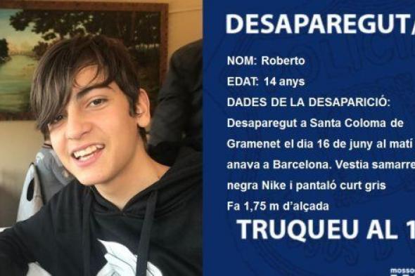 Los Mossos d'Esquadra buscan a un menor de 14 años, llamado Roberto L., que desapareció el sábado por la mañana cuando se dirigía de Santa Coloma de Gramenet (Barcelona) a una escuela de cómic.