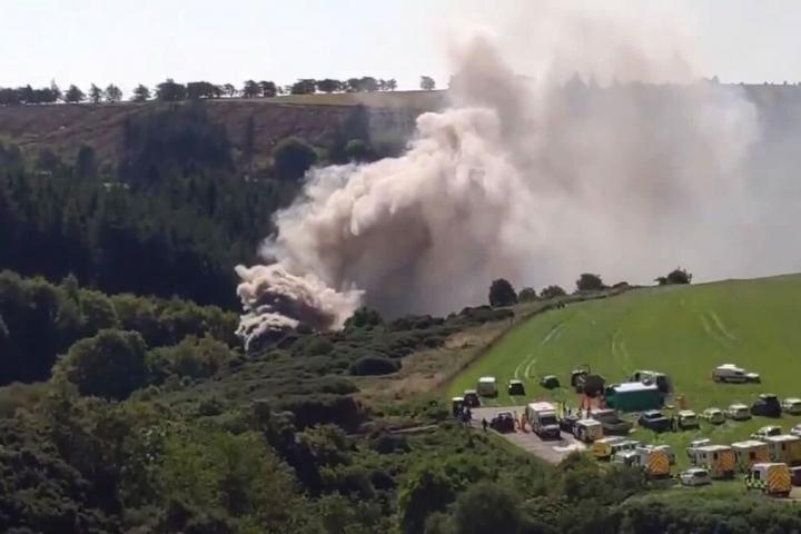 En las imágenes difundidas por la cadena BBC se puede ver una gran columna de humo y como siguen llegando vehículos de emergencia hasta la zona.