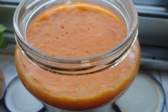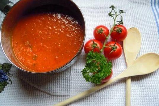 Se prepara con tomate, ajo, leche desnatada, orégano, albahaca, perejil, aceite y sal.