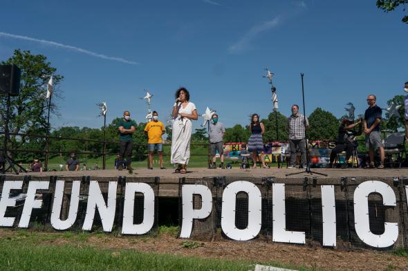 En una manifestación en un céntrico parque de la ciudad, nueve de los doce concejales de la corporación, cuya mayoría es a prueba de veto, se comprometieron a suspender la financiación del Departamento de Policía y establecer un modelo de seguridad pública basado en la comunidad, según informaron los medios locales.