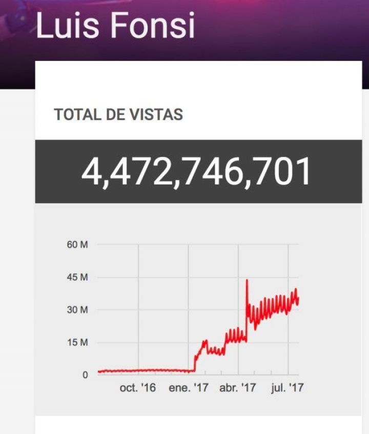 El tema, según EFE, está a punto de ser el que tiene mayor número de reproducciones en toda la historia de la música en plataformas de audio, como Spotify o Youtube: más de 4.500 millones. En España es disco de diamante por lograr 80 millones de reproducciones en streaming. No hay más que ver cómo han subido las búsquedas de su autor en YouTube entre julio de 2016 y julio de 2017.