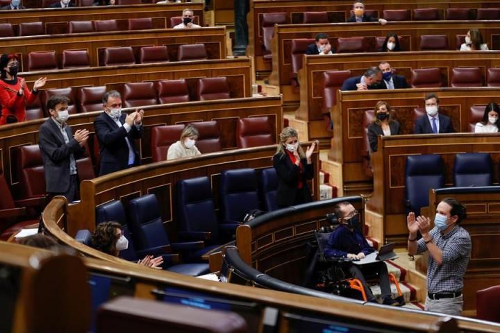 Pablo Iglesias ha dicho adiós este miércoles al Congreso tras casi seis años en él. El todavía vicepresidente segundo ha dedicado su última intervención en la tribuna de oradores a los antifascistas españoles: “Quiero que mis últimas palabras vuelvan a ser un homenaje a esas generaciones que lucharon contra el fascismo por la libertad”, ha rematado poniendo en pie a los pocos diputados de su partido y del PSOE que se encontraban en la Cámara Baja.
