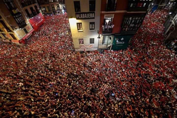 El chupinazo dio inicio a 204 horas de fiesta en blanco y rojo por las calles de Pamplona con un programa que ha incluido los ocho encierros, el concurso de fuegos artificiales, conciertos en distintos escenarios de la ciudad y música en la calle, y las salidas de la comparsa de gigantes y cabezudos.
