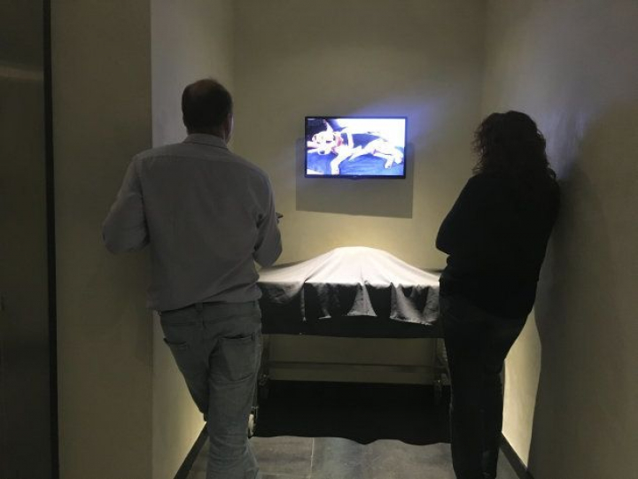 Detrás del vestíbulo están las dos pequeñas salas para velar a las mascotas. Ahí se coloca al animal, justo debajo de una pantalla iluminada con luz tenue donde los propietarios proyectan fotografías o vídeos de su vida. El cliente también elige si visten al animal o bien si lo incineran junto a algunos de sus objetos favoritos. Algunos incluso ponen una canción determinada o encienden incienso. Cuando los dueños sienten que ya se han despedido de su mascota, tienen la posibilidad de observar a través de un cristal cómo la introducen en el horno.
