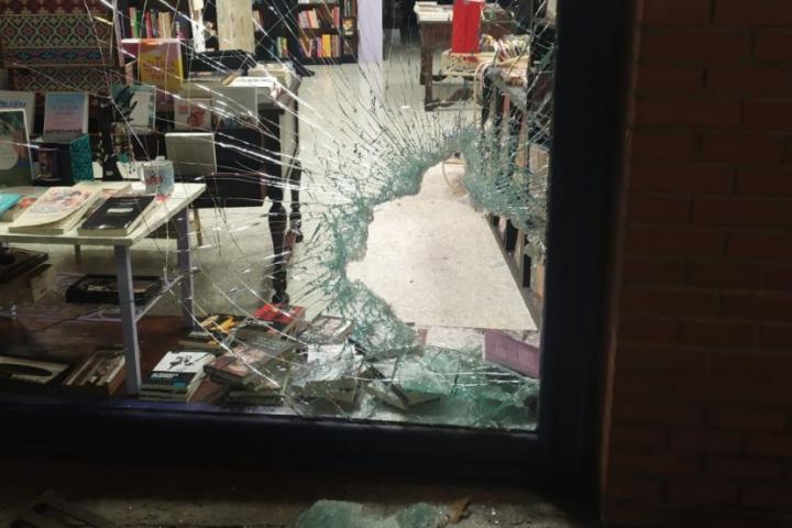 El escaparate de la librería feminista Mujeres & Compañía, ubicada en la calle Ercilla del madrileño distrito de Arganzuela, ha amanecido este domingo destrozado a causa de un golpe desde el exterior.