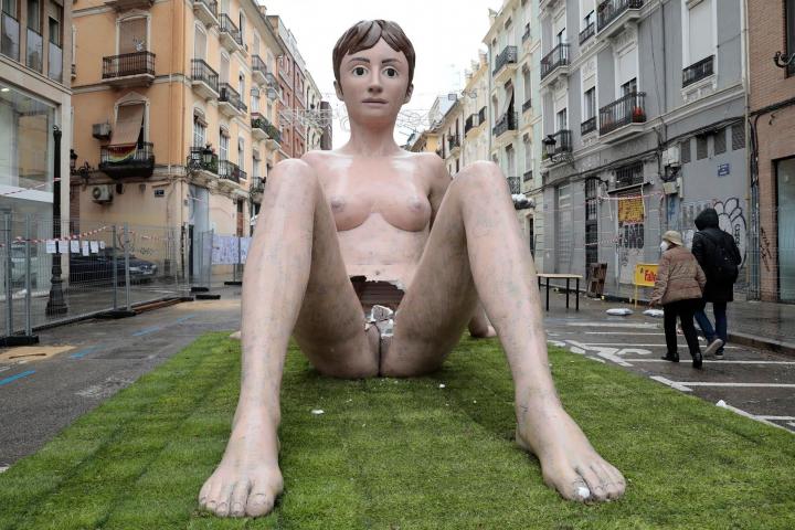 Destrozan la vulva de una falla de Valencia con forma de mujer desnuda