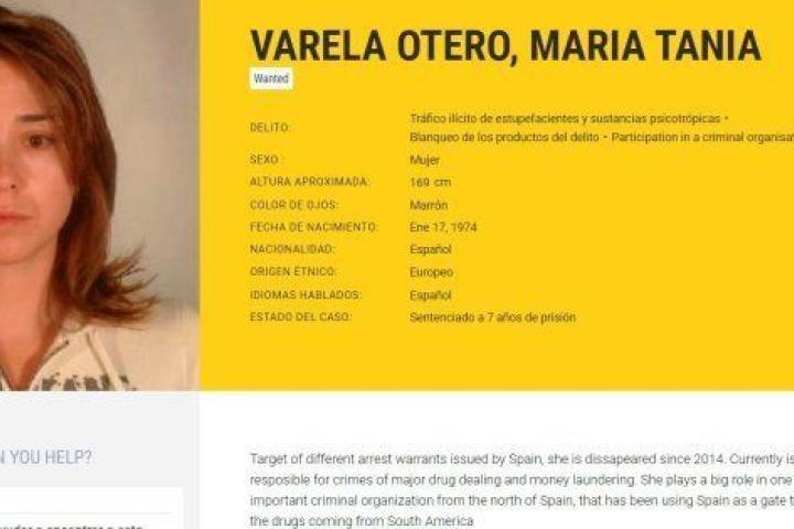 Tania Varela figuraba entre los fugitivos más buscados de Europol, ya que se la considera responsable de tráfico de drogas a gran escala y de blanqueo del dinero ingresado por la actividad criminal.