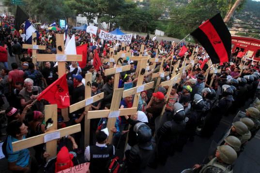 Señalado en una corte de Nueva York de traficar con cientos de toneladas de cocaína, el exmandatario salió de su casa de Tegucigalpa rodeado de policías.