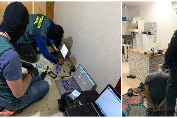La Guardia Civil está practicando un registro domiciliario para localizar los dispositivos empleados por el detenido para conectarse a internet, así como otras evidencias que permitan establecer claramente sus actividades y la red de contactos a través de la que compartía el material de propagandístico de contenido terrorista.