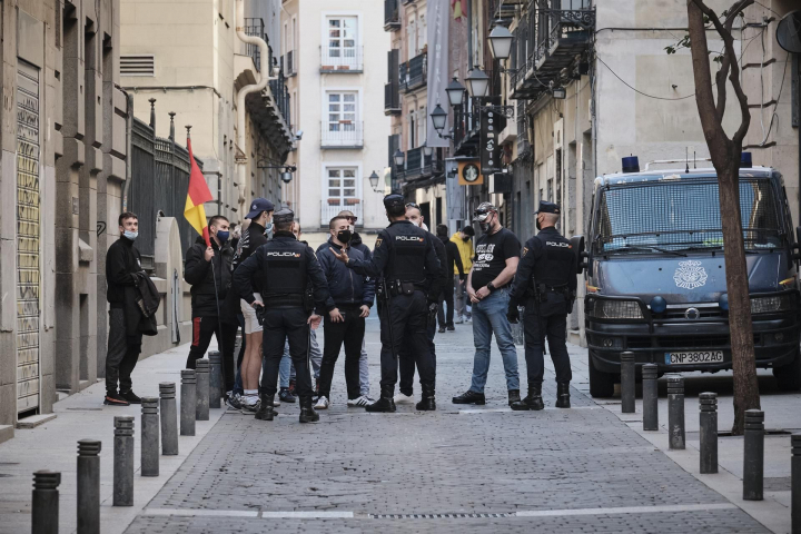 Los manifestantes han empezado a gritar “Fuera fascistas de nuestros barrios” y agentes de la Policía Nacional han separado este grupo radical del resto de manifestantes.