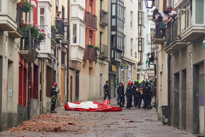 Los vecinos del inmueble permanecían a las 20.00 sin regresar a sus viviendas, después de haber sido desalojados, ante la actitud agresiva mostrada en todo momento por el arrestado. La Ertzaintza ha tenido que acordonar la zona y los bomberos, que se han desplazado al lugar, han procedido a cortar el gas por precaución.