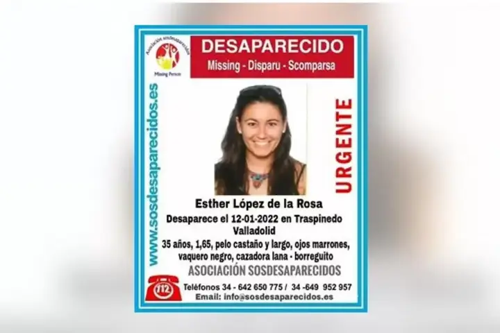 Esther López mide 1,65 y tiene el pelo largo y castaño, los ojos marrones y en el momento de su desaparición vestía un pantalón vaquero negro y una cazadora, según el cartel difundido por la Asociación SOSDesaparecidos.