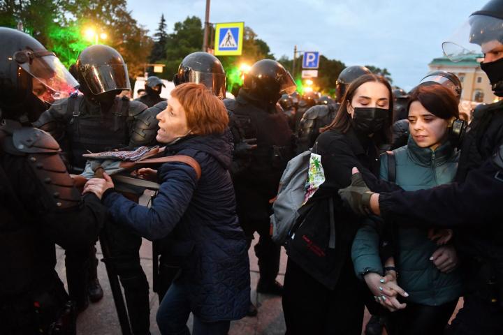 Casi la mitad de las detenciones para esa hora, 371, se había registrado en la capital. En San Petersburgo, la segunda ciudad del país, los detenidos ascendían a 128 y la policía empleó porras y táseres contra los manifestantes, según medios locales.