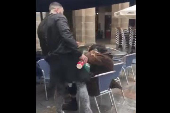 En las imágenes difundidas en redes sociales se observa a un individuo corpulento que se acerca a su víctima le espeta: "Eh, tú, Gabilondo. ¡Viva España!". Cuando está junto a él, le tira una bebida encima y comienza a golpearle. El agredido intenta huir y el agresor le propina una patada y le insulta.