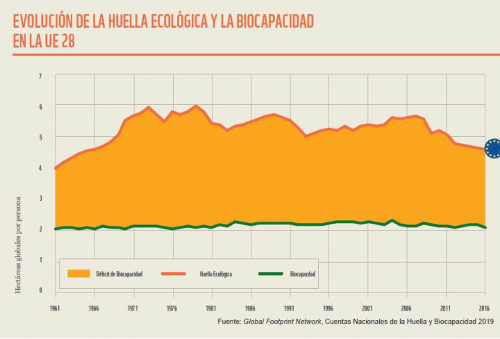 La organización subraya que el consumo en la Unión Europea es mayor, pese a contener el 7 % de la población mundial precisa del 20 % de los recursos globales, y se requerirían 2,8 planetas si todos siguieran sus pasos.