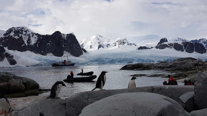 Va llegando la hora de la cena y nos encontramos navegando el estrecho de Gerlache. El cansancio se mezcla con la emoción en unos días que no dejan de sorprendernos. Acabamos de visitar la colonia más grande de pingüinos gentoo de la península Antártida, con unos 3.000 pares de ejemplares. Impresionantes icebergs rodean la Isla Cuverville. Rodeadas de esta belleza indescriptible observamos la infinita fragilidad que nos acompaña y nos damos cuenta de la necesidad de proteger la Antártida.