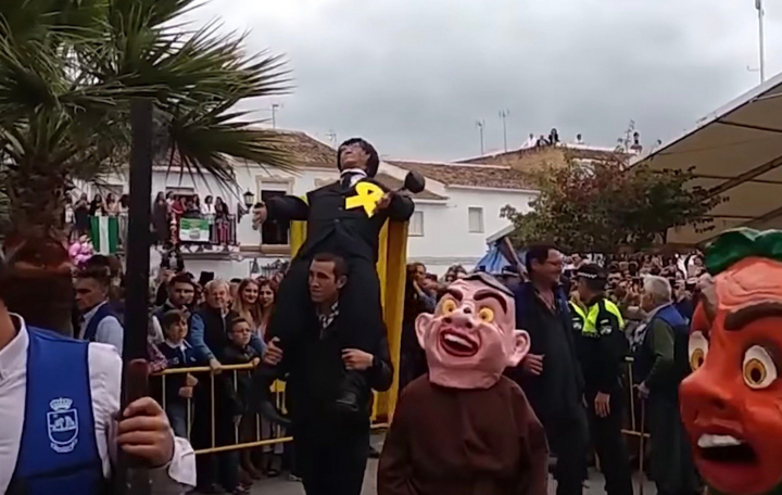 La protagonizada por los vecinos de la localidad sevillana de Coripe, donde, en la fiesta de la Quema del Judas, han quemado y disparado con escopetas a un muñeco de Carles Puigdemont, expresidente de la Generalitat de Cataluña.