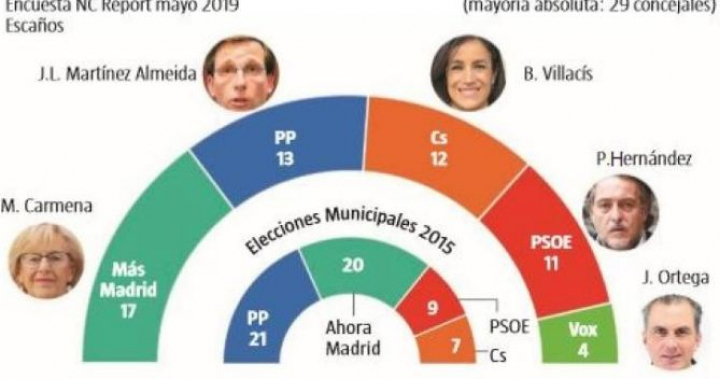 La de la encuesta de NC Report para La Razón, según la cual, en la ciudad de Madrid podría gobernar la derecha (PP, C’s y Vox) por un escaño de diferencia.