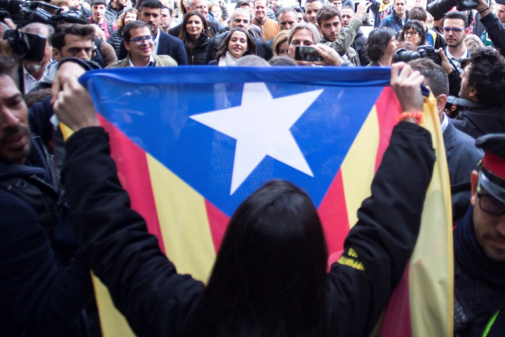 La de Inés Arrimadas, candidata de Ciudadanos por Barcelona, siendo increpada en Vic por un grupo de independentistas.