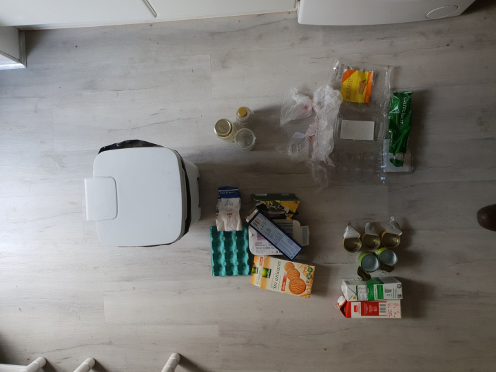 Como puede verse, la mayoría son envases de productos alimentarios. Hay latas de atún y vegetales, dos briks, varios envoltorios de plástico y papel o cartón, y algunos envases de vidrio.