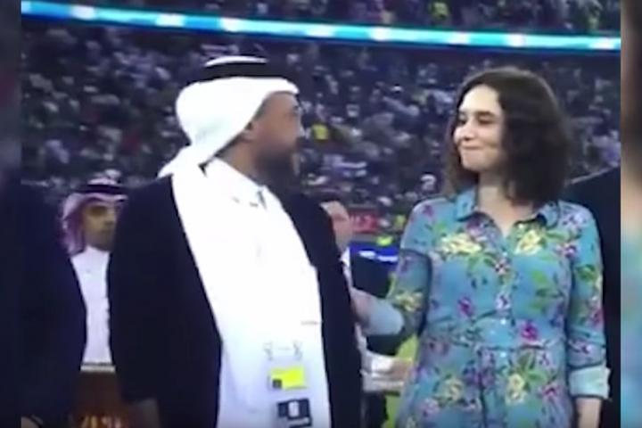 Un momento muy comentado por el gesto que tuvo Díaz Ayuso con Ahmed Al Mohtaseb, vicepresidente de Sela Sport, al que tocó la espalda para sorpresa del dirigente saudí, que no sabía bien qué hacer.