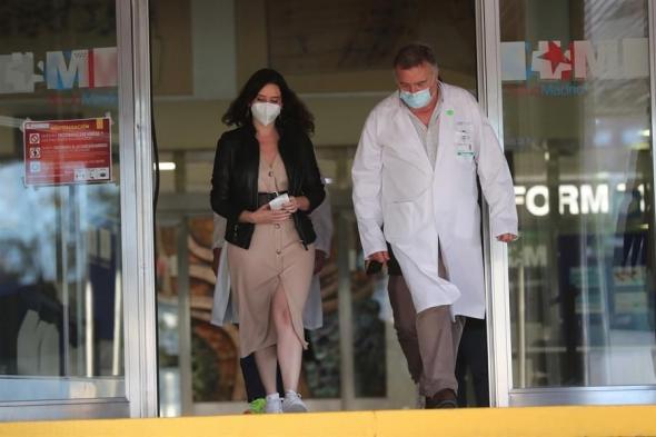 Isabel Díaz Ayuso ha visitado a su Ángel Gabilondo en el hospital Ramón y Cajal de Madrid tras conocerse que el candidato socialista tuvo que ser ingresado por una arritmia.