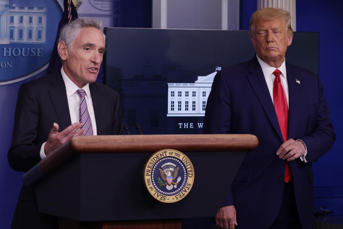 Scott Atlas, junto a Donald Trump en una rueda de prensa el 16 de septiembre de 2020 (Alex Wong/Getty Images).Alex Wong via Getty Images