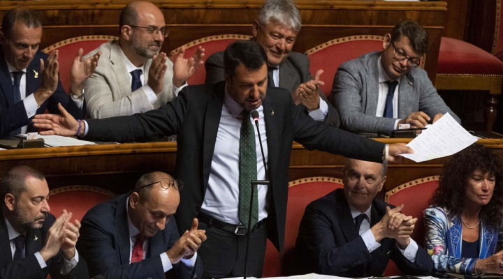 “Volvería a hacer lo mismo. No tengo miedo de la opinión de los italianos. Quien tiene miedo de la opinión de los italianos no es un hombre libre”, ha afirmado al comenzar su intervención Salvini, quien ha desatado la crisis política en el país, tras presentar una moción contra Conte, que no se ha votado.