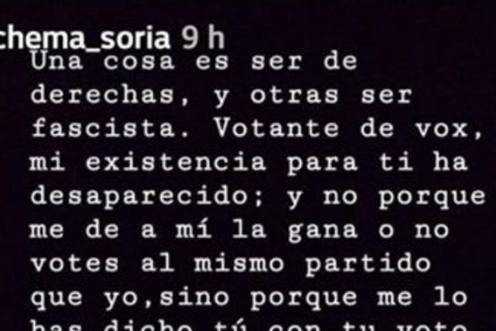 Chema Soria, concejal del PSOE en Beas del Segura (Jaén), ha dimitido después de publicar un mensaje en su cuenta de Instagram en el que dedicaba, entre otras frases, este mensaje a los votantes de Vox: “Ojalá un borracho viole a tu madre o tu hermana”.