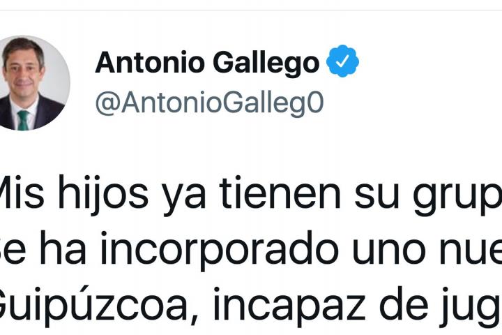 Tuit del diputado de Vox Antonio Gallego.TWITTER: ANTONIO GALLEGO