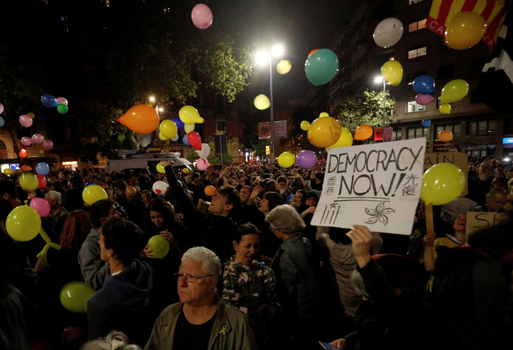 Una manifestación ‘de globos’ convocada por los CDR ha sido el principal acto de la tarde-noche, que se ha desarrollado sin apenas complicaciones.