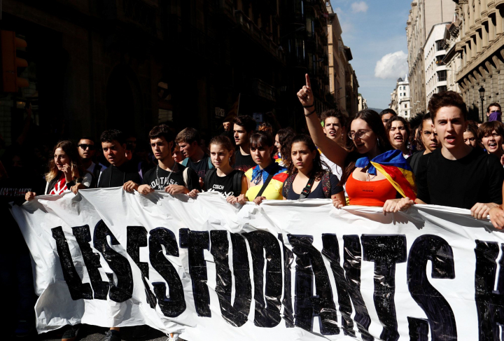 Los estudiantes han exhibido numerosas banderas independentistas y han proferido consignas como “Buch, dimisión”, “Las calles serán siempre nuestras”, “Esta sentencia es una vergüenza” o “Libertad, presos políticos”.