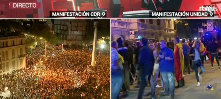 Barcelona comienza a vivir momentos de tensión esta tarde por la coincidencia de dos manifestaciones, una de los CDR contra la sentencia del Supremo, y otra de la extrema derecha por la unidad de España.