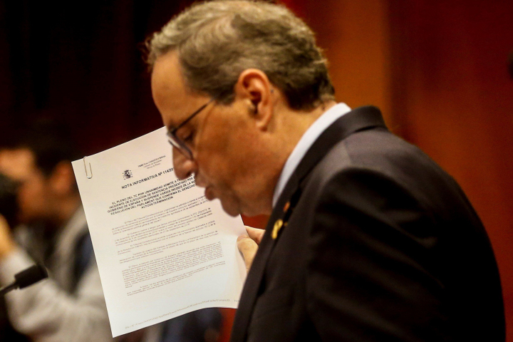 10.02 horas. Comienza la comparecencia de Torra en el Pleno extraordinario del Parlament