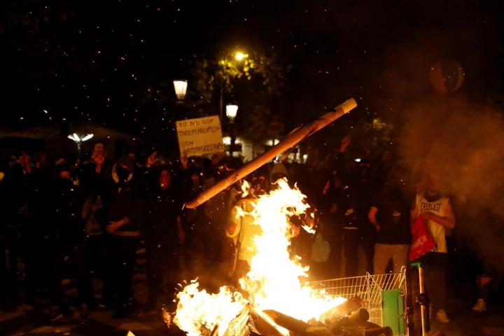 Vuelven las escenas de fuego y barricadas en las calles barcelonesas, como la Rambla de Cataluña.