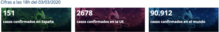 151 casos confirmados; 2.678 en la UE y 90.912 en todo el mundo, cita el Ministerio.