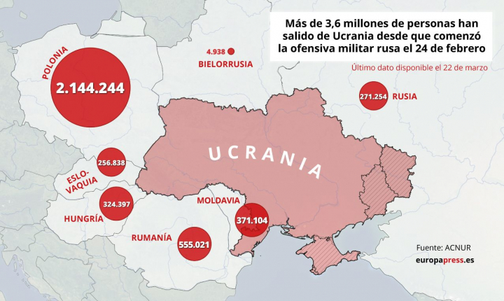 15.21 Polonia, Rumanía y Moldavia reciben a la mayoría de los 3,6 millones de refugiados ucranianos