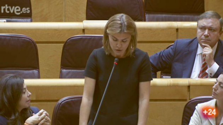 La senadora del PP Clara San Damián se refiere a la reciente proclamación de la independencia en el Parlament de Cataluña al asegurar que "Cataluña es y seguirá siendo España" y que las medidas que aprobará el Senado permitirán restituir la legalidad y la seguridad económica en esta región.