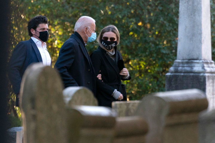 Las cámaras han captado a Biden acudiendo a una iglesia en su ciudad, Wilmington (Delaware) a primera hora de este martes. En la imagen aparece junto a su nieta Finnegan.