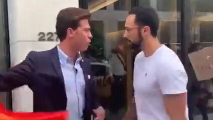 8.40 horas. Valtonyc y un dirigente de Vox se enfrentan a las puertas de la delegación de la Generalitat en Bruselas