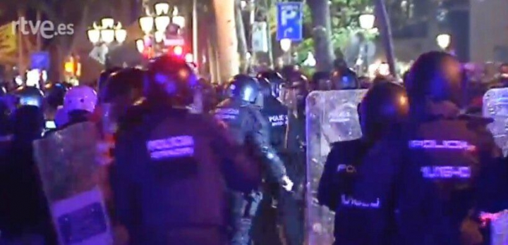 Los manifestantes más radicales han encendido fogatas en las calles de Barcelona y la policía ha reaccionado endureciendo las cargas.