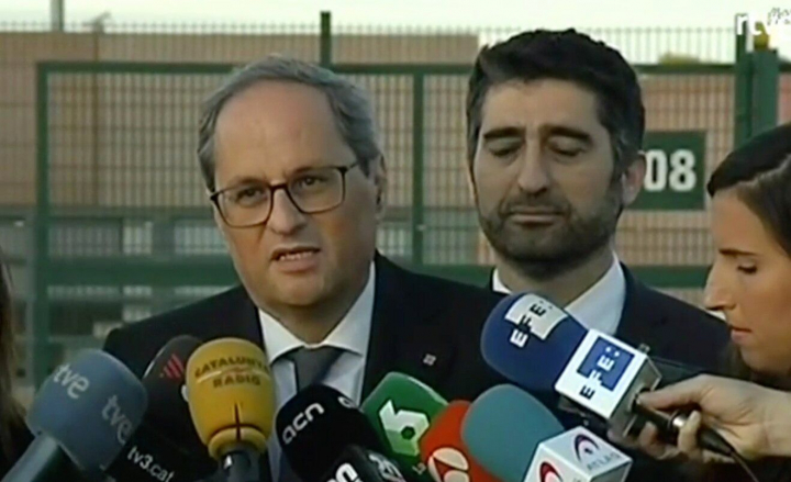 Quim Torra concluye su visita a los presos en Lledoners. “Están firmes, pero indignadísimos; leída la sentencia su indignación es mayor. Ha sido un juicio farsa, una pantomima”.