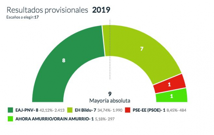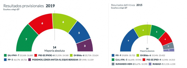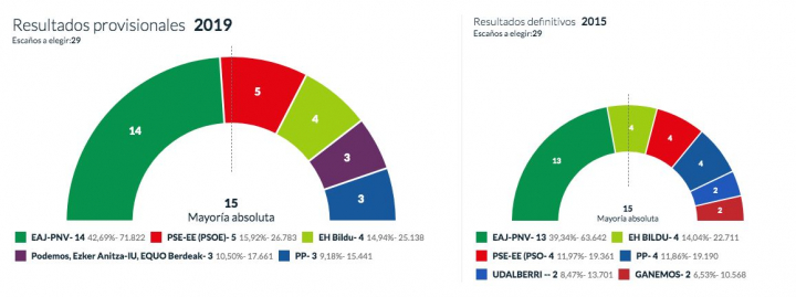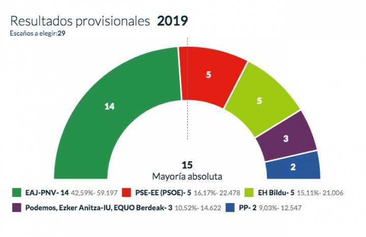 23:38 horas. Bilbao ya ha contado todos los votos: el PNV se queda a un escaño de la mayoría absoluta.
