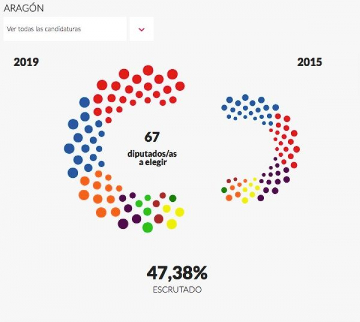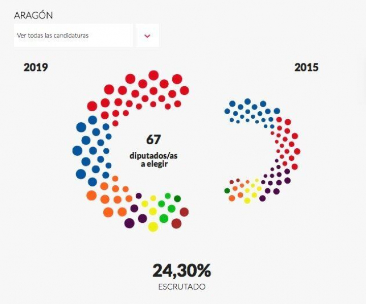 22:54 horas. La izquierda podría perder Aragón, al 24% escrutado.