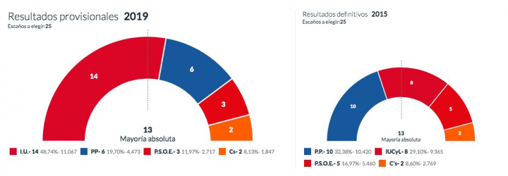 22:40 horas. IU obtendría mayoría absoluta en Zamora, con cerca del 70% escrutado.