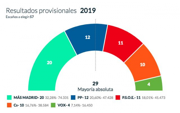 01:20 horas. El PSOE gana en la Comunidad de Madrid, pero la derecha gobernará.
