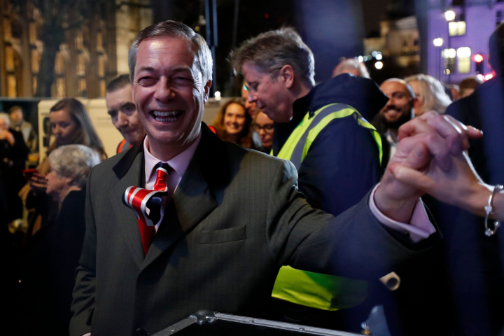El líder eurófobo está dando un mitin en los minutos previos a la medianoche. Es su momento.